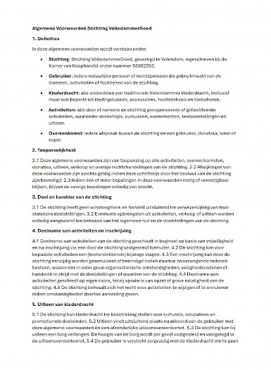 Doelstelling: Het behoud en de bevordering van de traditionele Volendammer klederdracht