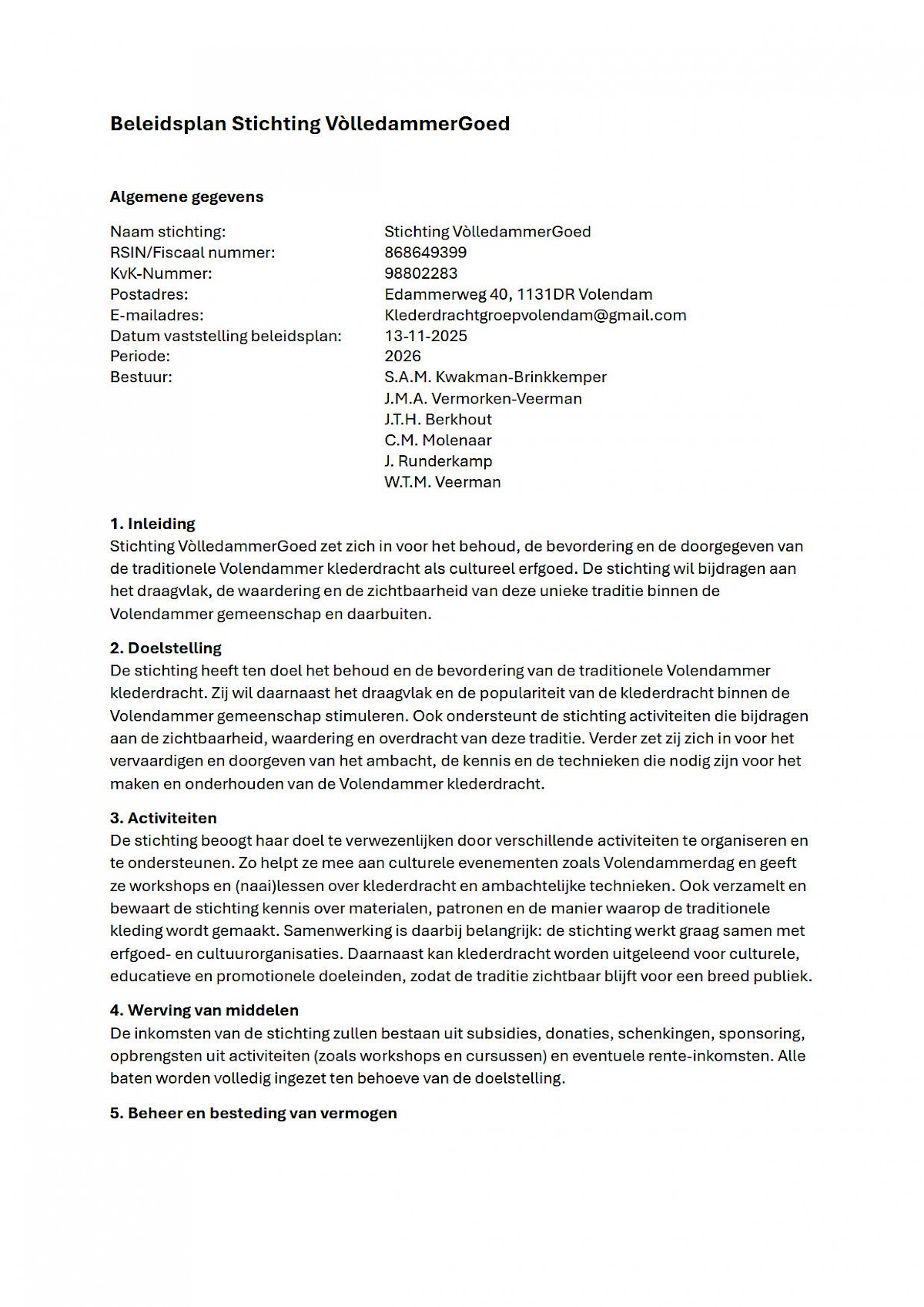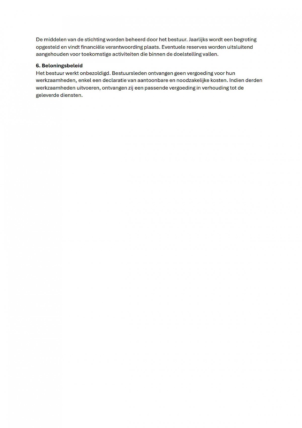 Beleidsplan: Zie onderstaand