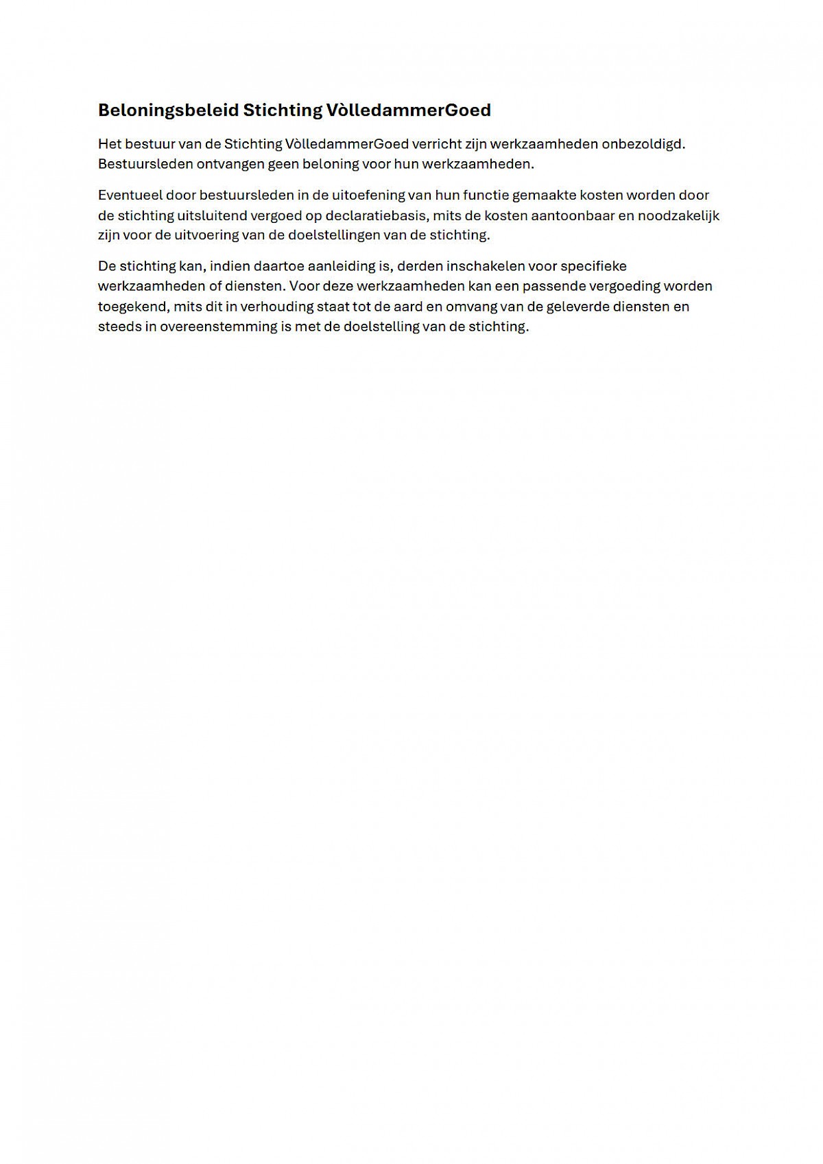 Naam van de stichting: Stichting VòlledammerGoed