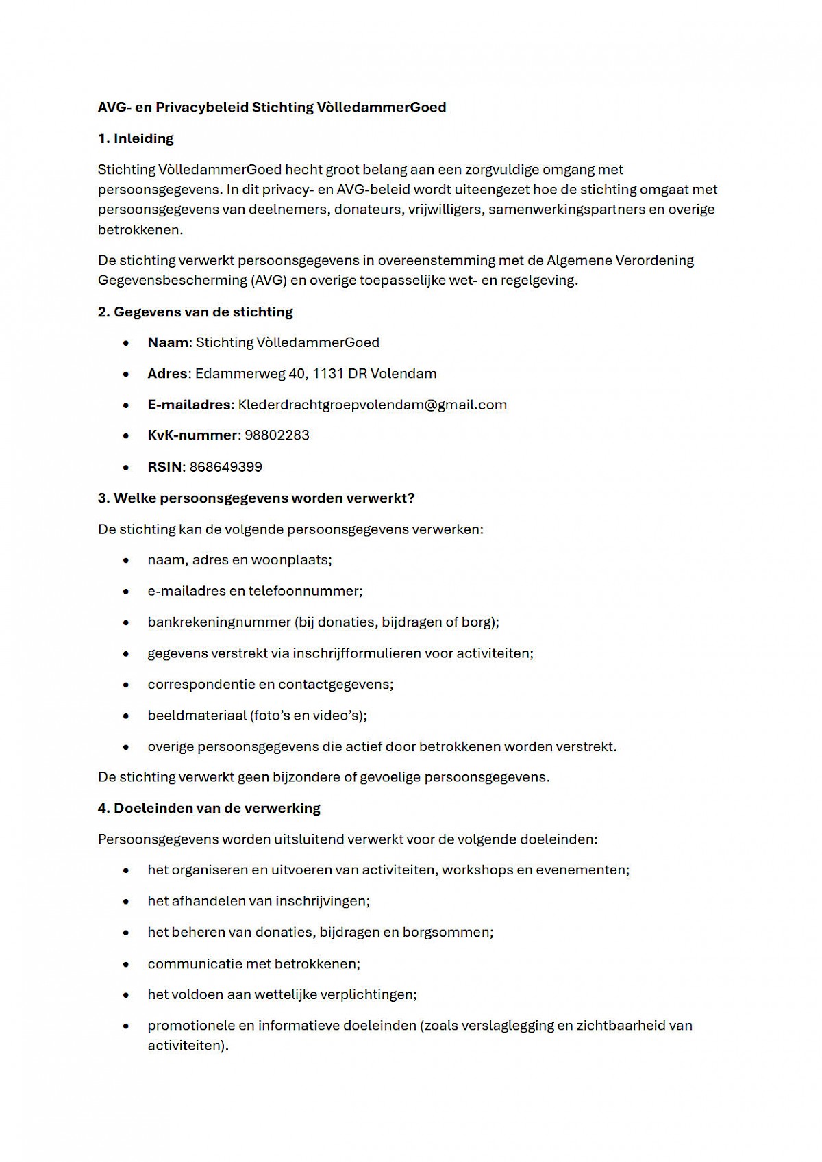 E-mailadres: Klederdrachtgroepvolendam@gmail.com